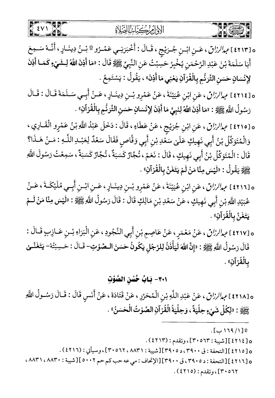 301- بَابُ حُسْنِ الصَّوْتِ.