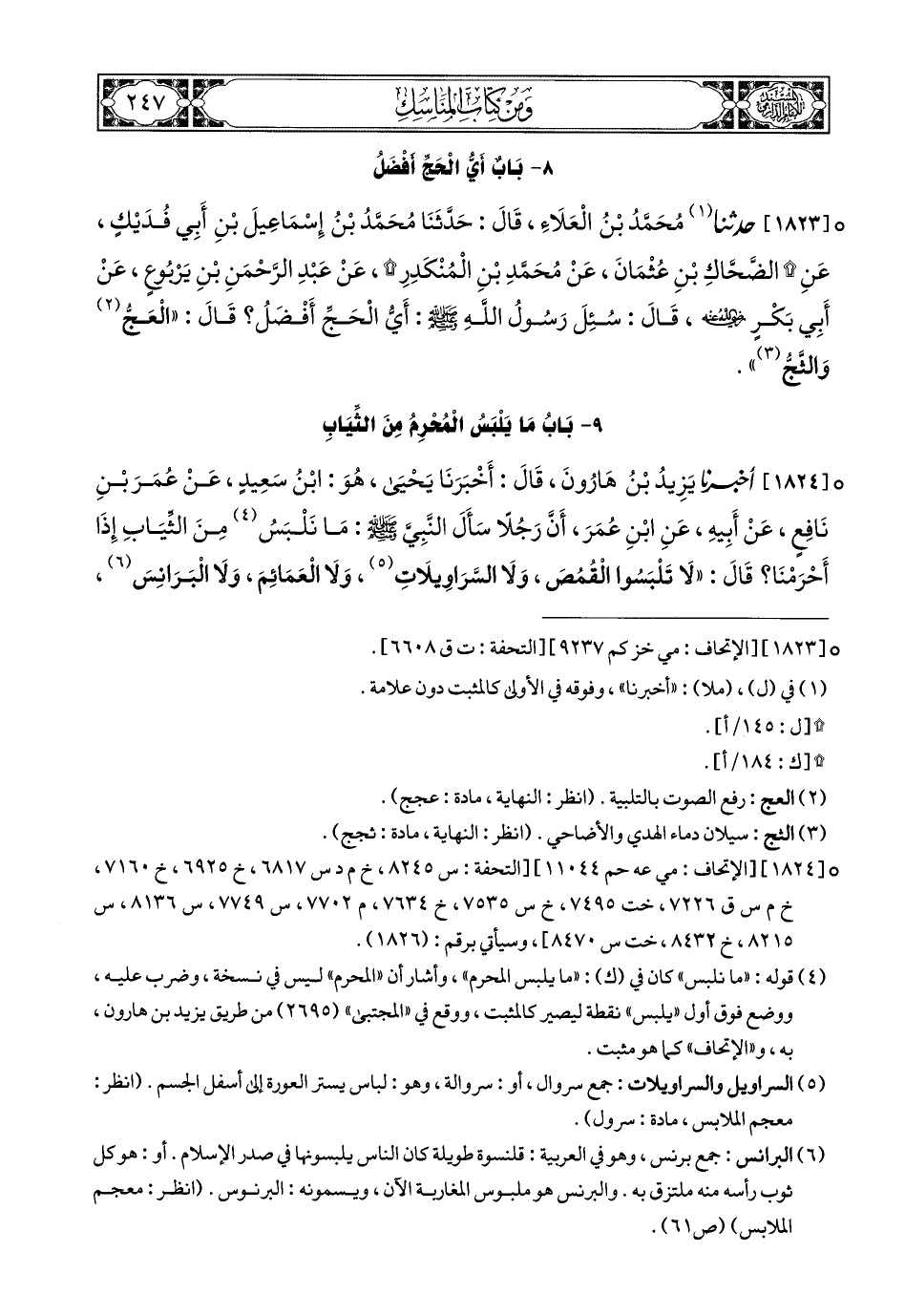 9- باب مَا يَلْبَسُ الْمُحْرِمُ مِنَ الثِّيَابِ.