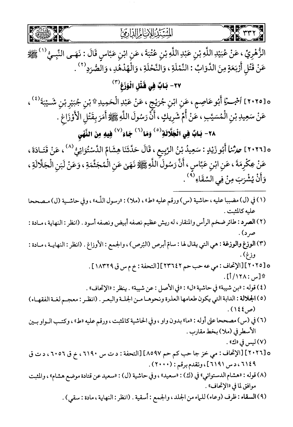 2026- حَدَّثَنَا أَبُو زَيْدٍ سَعِيدُ بْنُ الرَّبِيعِ, قَالَ: حَدَّثَنَا هِشَامٌ الدَّسْتُوائِيُّ (2), عَنْ قَتَادَةَ, عَنْ عِكْرِمَةَ, عَنِ ابْنِ عَبَّاسٍ, أَنَّ رَسُولَ اللهِ صَلى الله عَليهِ وسَلم نَهَى عَنِ الْمُجَثَّمَةِ, وَعَنْ لَبَنِ الْجَلاَّلَةِ, وَأَنْ يُشْرَبَ مِنْ فِي السِّقَاءِ.