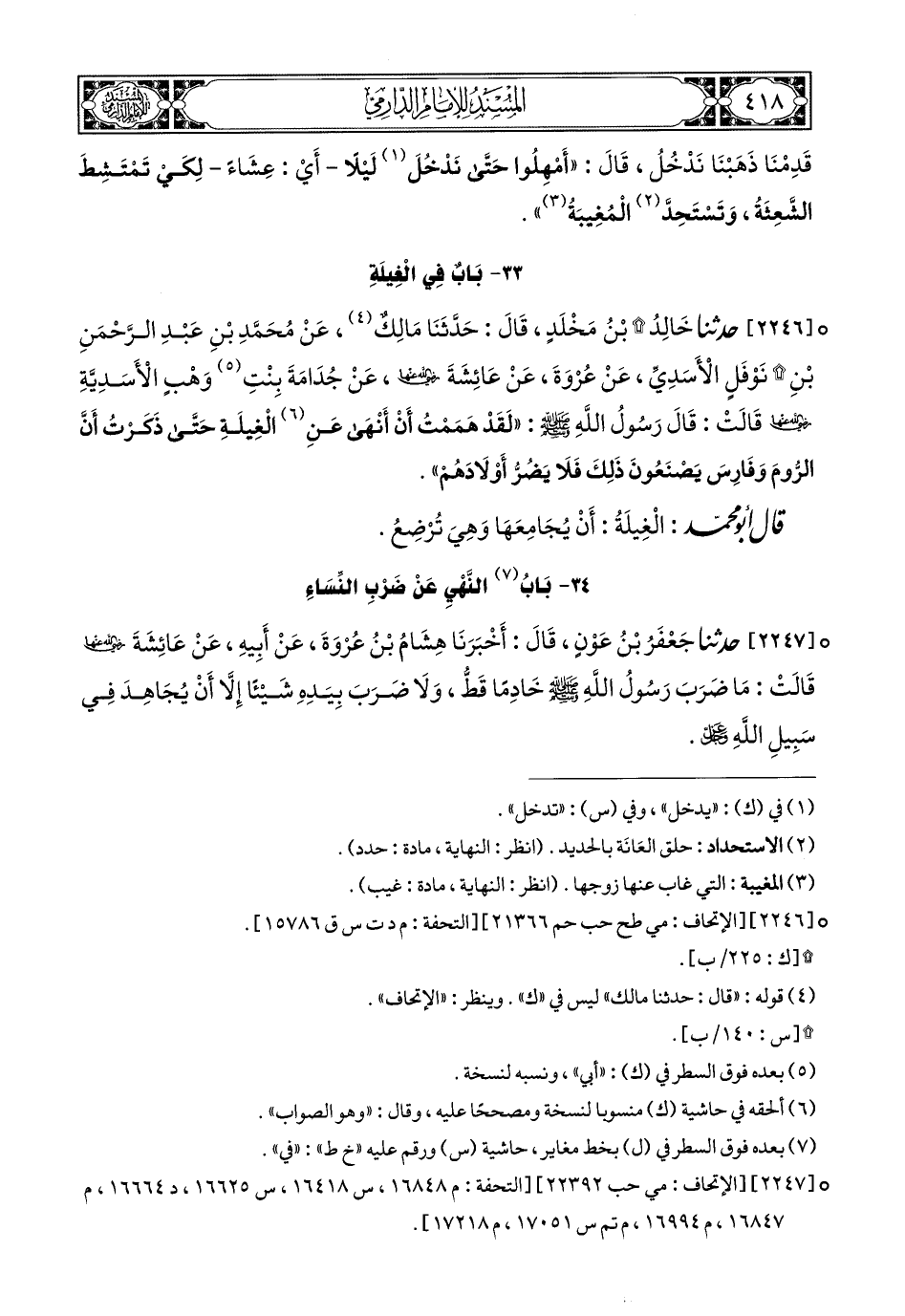(1) هو عَبد الله بن عَبد الرَّحمَن, الدَّارِميُّ, مُصَنِّف الكِتاب.