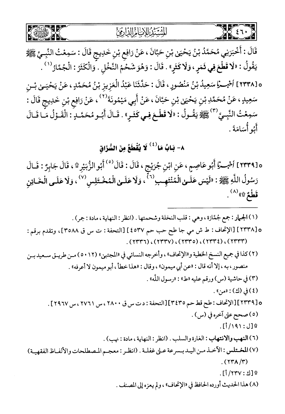 (2) قال محقق طبعة دار البشائر: ذكره الحافظ في إتحاف المهرة برقم: 3435, دون أن يرقم عليه برقم الدارمي, كأنه ذهل عن كونه عنده.