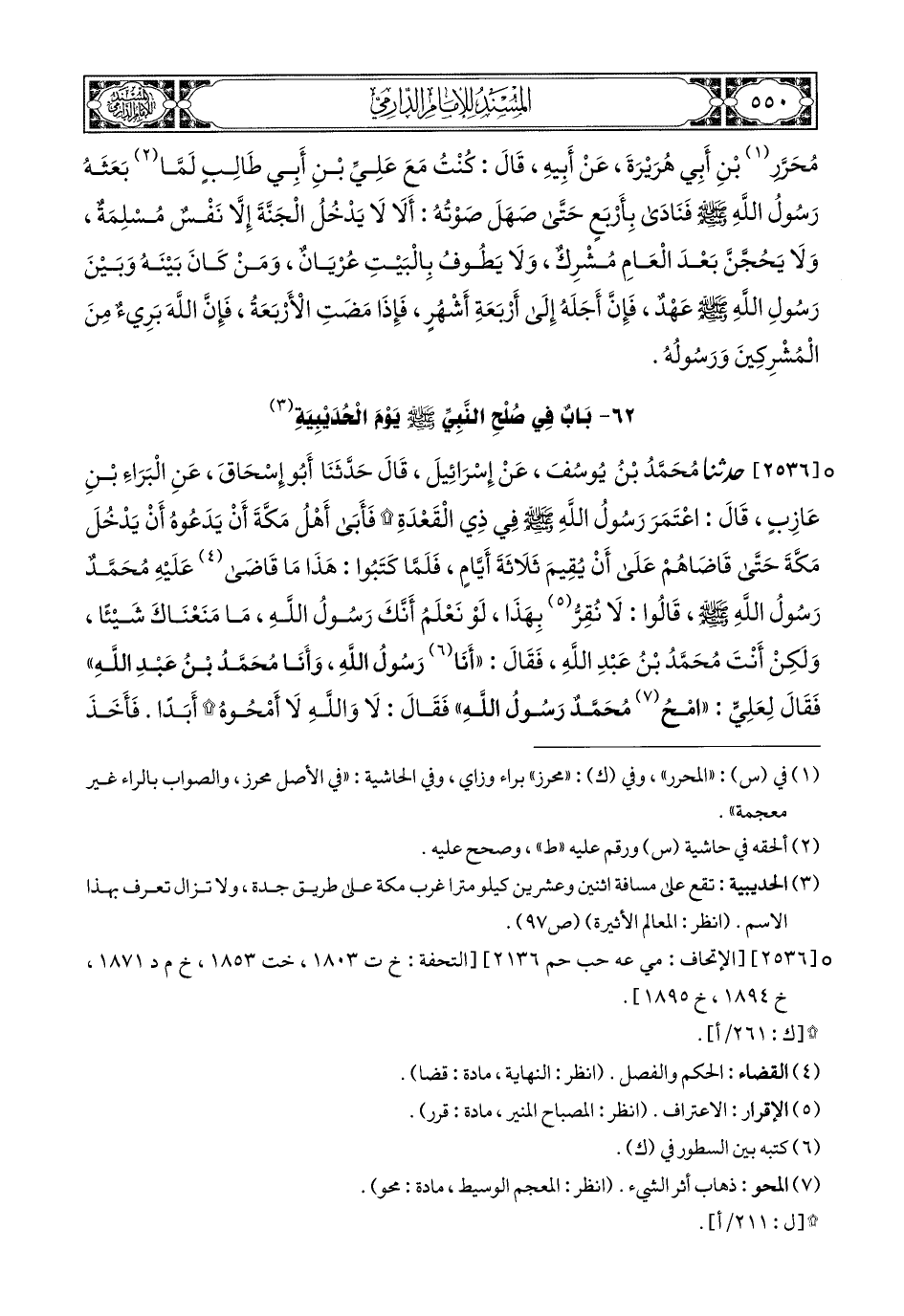 (1) في طبعة دار البشائر: «امح رسول الله» وقال محققها: في جميع الأصول والمطبوعة: امح محمد رسول الله. ومحل الخلاف: كلمة رسول الله فقط.