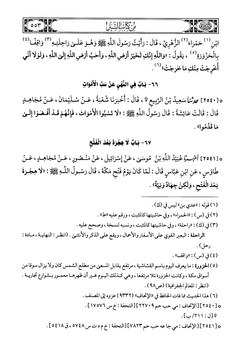 2541- أَخبَرَنا عُبَيْدُ اللهِ بْنُ مُوسَى, عَنْ إِسْرَائِيلَ, عَنْ مَنْصُورٍ, عَنْ مُجَاهِدٍ, عَنْ طَاوُوسٍ, عَنِ ابْنِ عَبَّاسٍ, قَالَ: لَمَّا كَانَ يَوْمُ فَتْحِ مَكَّةَ, قَالَ رَسُولُ اللهِ صَلى الله عَليهِ وسَلم: لاَ هِجْرَةَ بَعْدَ الْفَتْحِ, وَلَكِنْ جِهَادٌ وَنِيَّة (1).