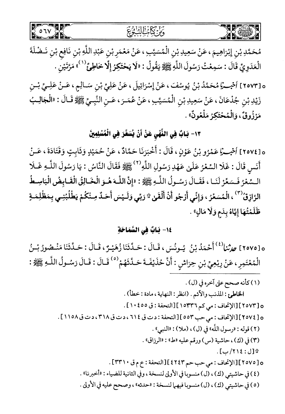 2574- أَخبَرَنا عَمْرُو بْنُ عَوْنٍ, قَالَ: أَخبَرَنا حَمَّادٌ (1), عَنْ حُمَيْدٍ, وَثَابِتٍ, وَقَتَادَةَ, عَنْ أَنَسٍ, قَالَ: غَلاَ السِّعْرُ عَلَى عَهْدِ النَّبِيِّ صَلى الله عَليهِ وسَلم, فَقَالَ النَّاسُ: يَا رَسُولَ اللهِ, غَلاَ السِّعْرُ, فَسَعِّرْ لَنَا, فَقَالَ رَسُولُ اللهِ صَلى الله عَليهِ وسَلم: إِنَّ اللهَ هُوَ الْخَالِقُ الْقَابِضُ الْبَاسِطُ الرَّازِقُ الْمُسَعِّرُ, وَإِنِّي أَرْجُو أَنْ أَلْقَى رَبِّي, وَلَيْسَ أَحَدٌ مِنْكُمْ يَطْلُبُنِي بِمَظْلِمَةٍ ظَلَمْتُهَا إِيَّاهُ بِدَمٍ وَلاَ مَالٍ.