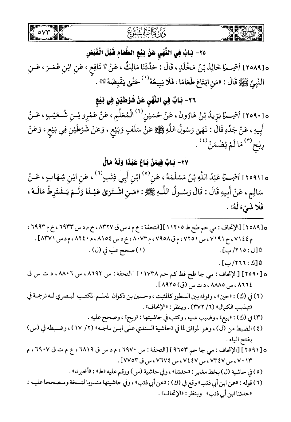 25- باب في النهي عن بيع الطعام قبل القبض.