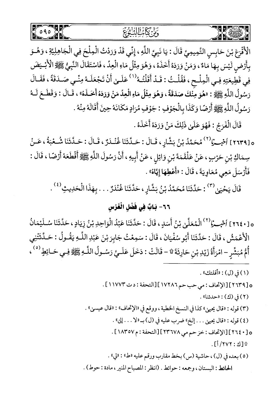 (1) كذا في طبعات: دار التأصيل, ودار البشائر, ودار المُغني (2651), ودار الريان (2609), والطبعة الهندية صفحة (348), والنسخة المغربية الخطية, الورقة (237 /أ), والنسخة الأزهرية الخطية, الورقة (211 /أ).