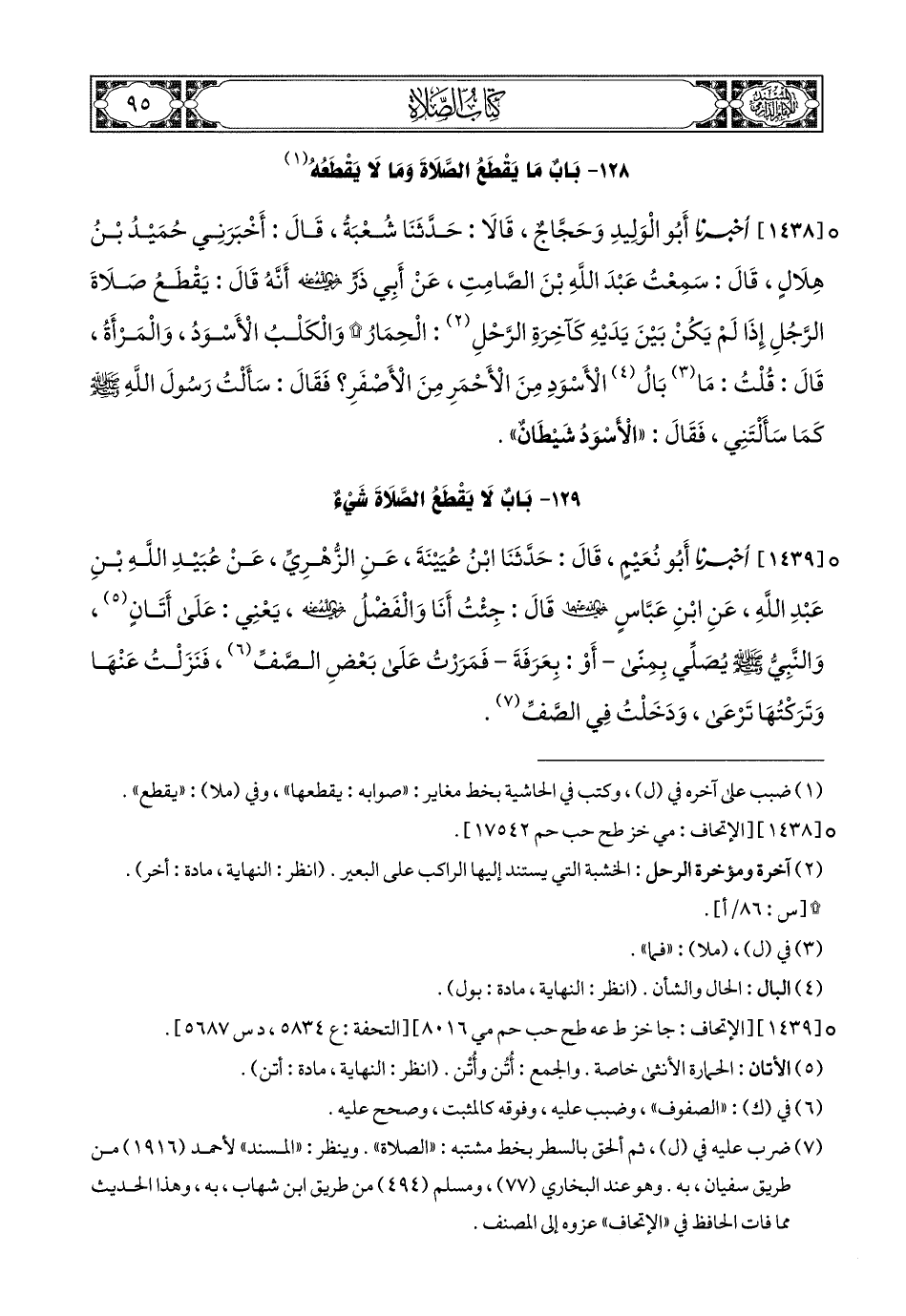 128- باب مَا يَقْطَعُ الصَّلاَةَ وَمَا لاَ يَقْطَعُهُ (1).