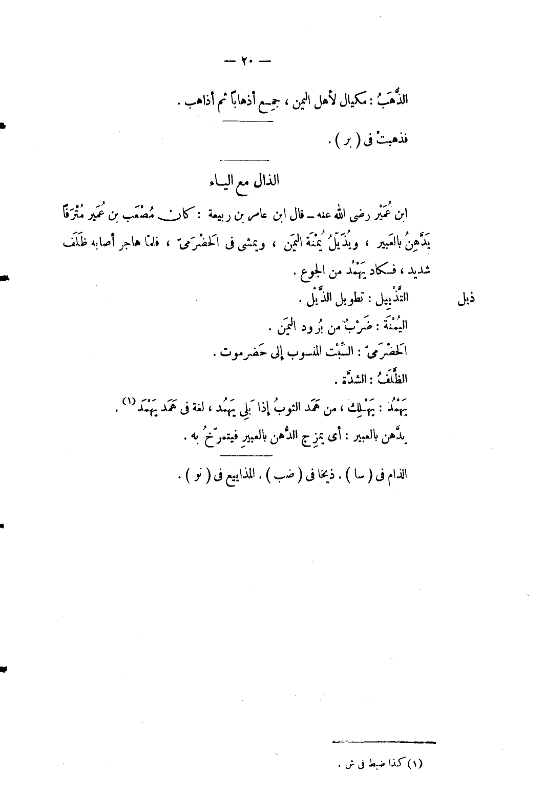 ذيل التذييل: تَطْوِيل الذيل. اليمنة: ضرب من برود الْيمن. الْحَضْرَمِيّ: السبت الْمَنْسُوب إِلَى حَضرمَوْت. الظلْف: الشدَّة. يهمد: يهْلك من همد الثَّوْب إِذا بلي يهمد لُغَة فِي همد يهمد. يدهن بالعبير: أى يمزج الدّهن بالعبير فيمترخ بِهِ. الذام فِي (سا) . ذيخا فِي (ضَب) . المذاييع فِي (نو) .