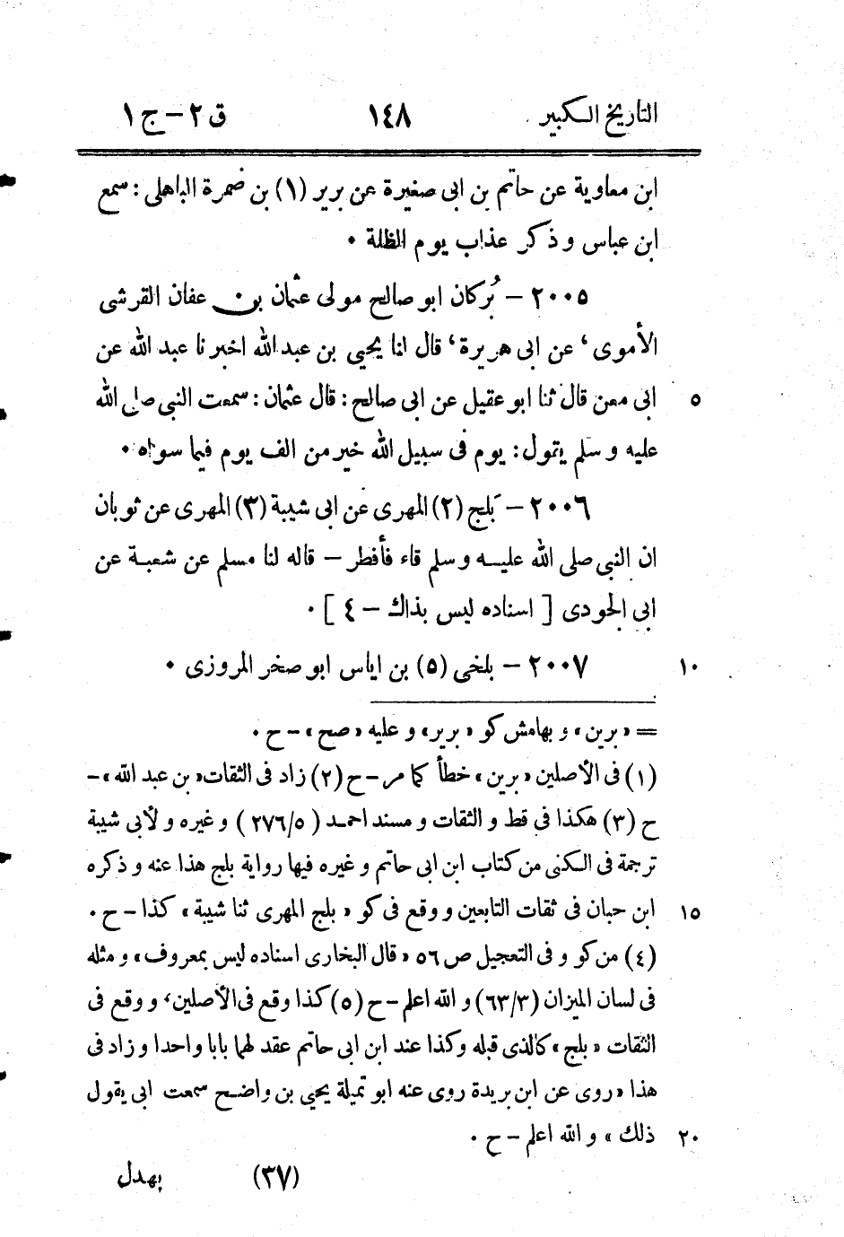 (2) عند ابن ابى حاتم " روى عن شريح " وفى الثقات " يروى عن العراقيين " وفى الكنى للدولابي (2 / 147) من طريق عيسى بن يونس عن ابيه " عن بهدل ابى الوضاح ان عليا رضى الله عنه مر باللحامين.." ومن طريق اخرى عن يونس بن ابى اسحاق " عن بهدل ابى الوضاح قال مر علي عليه السلام ... " وظاهره انه تابعي ولكن ابن حبان ذكره في اتباع التابعين - ح (3) قط " عبيد الله " وبهامش كو " خ - عبيد " الصواب عبد الله كما في كتاب ابن ابى حاتم وغيره ولعبد الله هذا ترجمة عندهم في بابه وهو صحابي - ح (4) من كو.