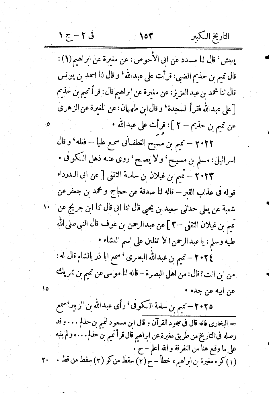 2032 - تميم بْن عَبْد الرَّحْمَن (4) سمع عطاء وابن جبير، منقطع، (1) بهامش قط " فرع بكسر الفاء وفتح الراء قيده عبد الغنى " (2) هو ابن عامر صرح به ابن ابى حاتم، ووقع في قط " عتبة " وبهامشها " عقبة في اخرى " - ح (3) وقع في الاصلين " الحسن " وفى كتاب ابن ابى حاتم " الحسين " وكذلك تقدم في ترجمة ارطاة رقم (1677) - ح (4) هذه الترجمة من قط وأشار عليها " لا - إلى " وكتب بالهامش " سقط من رواية العذري " = [*]