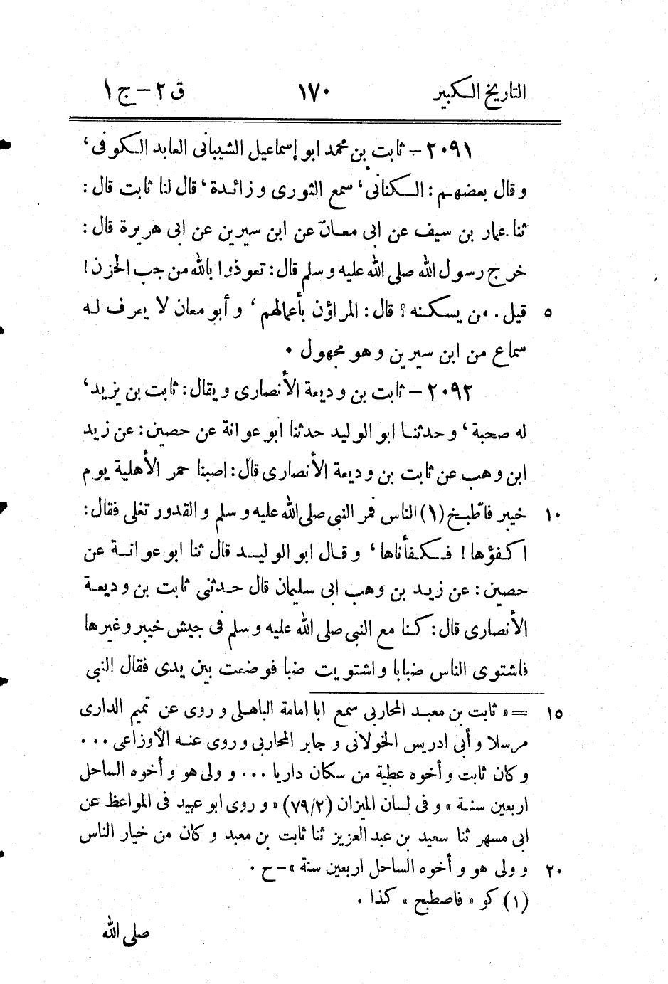 2094 - ثابت بْن هرمز أَبُو المقدام الحداد مولى بكر بن وائل الكوفى والد عمرو، سَمِعَ سَعِيد بْن المسيب وحبة [العرني - 2] وزيد بْن وهب وسَعِيد بْن جُبَيْر سَمِعَ منه الثوري وَقَالَ لنا آدم حَدَّثَنَا شُعْبَة حَدَّثَنَا الحكم عَنْ ثابت ثم لقيت ثابتا.