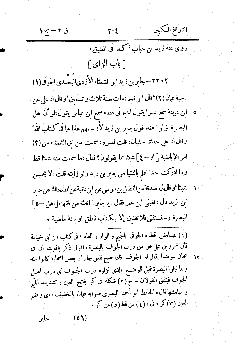 2205 - جَابِر بْن سليم أَبُو جرى الهجيمي حديثه فِي الْبَصْرِيّين، قَالَ لِي عَبْدُ اللَّهِ بْنُ أَبِي شَيْبَةَ العبسي نا خَالِد بْنُ مَخْلَدٍ سَمِعَ عَبْدَ الْمَلِكِ بْنَ حَسَنٍ الْحَارِثِيَّ (1) سَمِعَ [سَهْمَ 2] بْنَ الْمعتَمِرِ عَنِ الْهُجَيْمِيِّ (3) : أَنَّهُ لَقِيَ النَّبِيّ صَلَّى اللَّهُ عَلَيْهِ وَسَلَّمَ وَإِذَا هُوَ مُتَّزِرٌ بِإِزَارِ قُطْنٍ، وقَالَ لَنَا مُوسَى بْن إِسْمَاعِيل: حَدَّثَنَا عَبْد السَّلامِ بْنُ غَالِبٍ - وَقَالَ مُوسَى: وَخَالَفَنَا بَعْضُهُمْ فَقَالَ: عَبْدُ السَّلامِ (4) بْنُ عَجْلانَ - سَمِعَ عُبَيْدةَ سَمِعَ جابرا ابا جرى الهجيمى