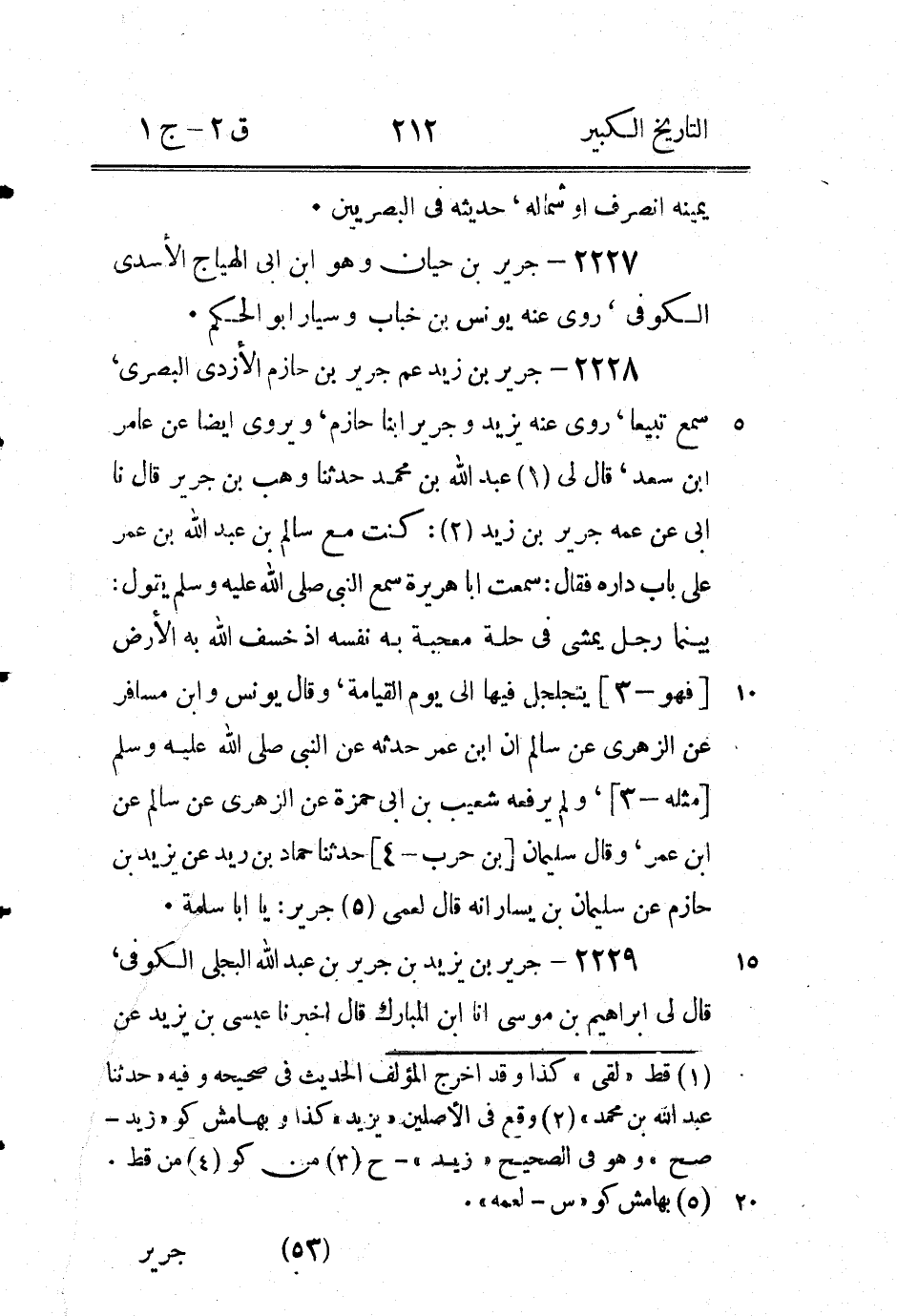 2233 - جرير بْن عَبْد اللَّه (2) سَمِعَ معاوية بْن قرة قَالَ لنا مُوسَى حَدَّثَنَا جرير بْن عَبْد اللَّه سَمِعَ مُوسَى بْن دهقان رأى ابْن عُمَر أجاب