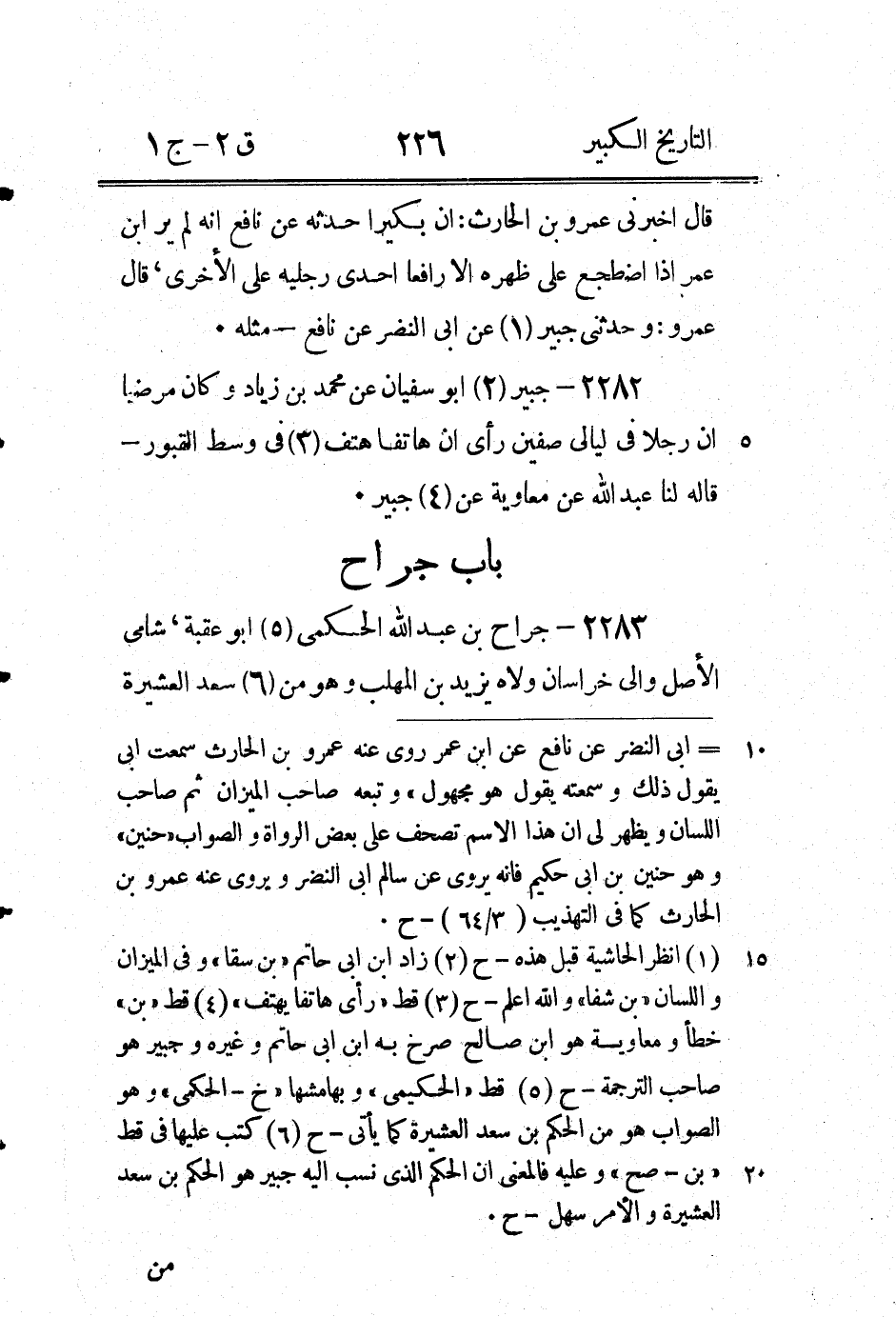 (1) لم يذكره ابن ابى حاتم ولكن قال في الذى قبله " روى عن ابن سيرين روى عنه يحيى بن عطية وصفوان بن عمرو " فكأنهما عنده واحد ويحتمل ان يكون كل من ابن سيرين والجراح روى عن الآخر اما ابن حبان فتبع المؤلف ذكر الاول في التابعين والثانى في اتباع التابعين - ح (2) لم يذكره ابن ابى حاتم (3) قط " الحكيمي " (4) قط " الاباضي " خطأ - ح (5) بين فرس وقيس عيلان عدد من الآباء ووقع في قط " بن " كذا - ح.