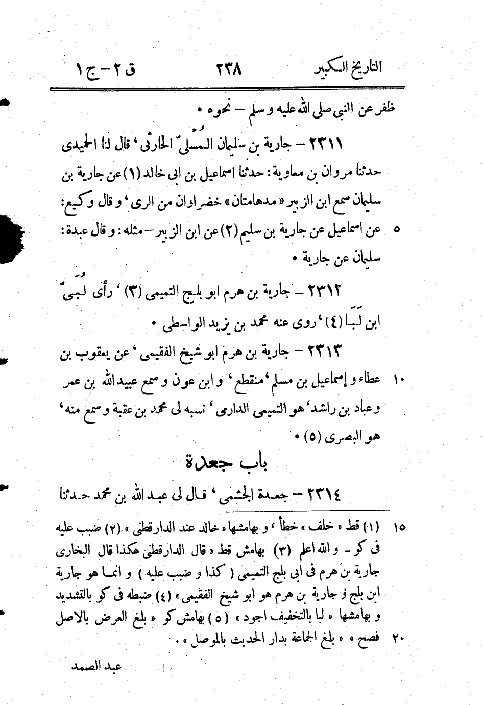 باب جعد [أَخْبَرَنَا الشيخ أَبُو ذر عَبْد بْن أَحْمَد بْن مُحَمَّد بن عبد الله الهروي في باب الندوة في شهر (بياض) سنة خمس عشرة وأربعمائة قال أخبرنا أَبُو بكر أَحْمَد بْن عبدان بْن مُحَمَّد بن الفرج بن جامع الحافظ الشيرازي قرأت عليه قَالَ أخبرنا أَبُو الْحَسَن مُحَمَّد بْن سهل المقري قَالَ نا محمد بن اسماعيل البخاري قال - 3] .