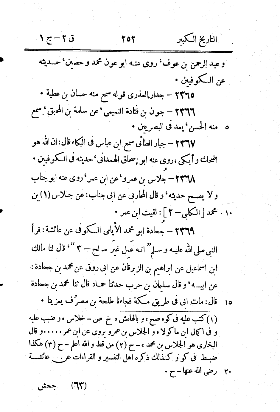 (1) هكذا في الاصلين وكتاب ابن ابى حاتم والثقات ووقع بهامش قط " صوابه رئاب " وهذا وهم انما جحش بن رئاب اسدي جاهلي والد عبد الله ابن جحش الصحابي وأخته زينب ام المؤمنين - ح (2) من قط (3) بهامش كو " في ص - أبو " (4) هكذا في كو، وقال ابن ماكولا في الاكمال " وقال حماد ابن مسعدة عن ابن عجلان حوثة بحاء مهملة قاله البخاري في التاريخ عن = [*]