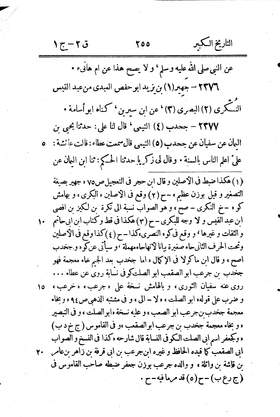 (4) قط " عن ابى جحدب " والله اعلم - ح (5) في نسخة كتاب ابن ابى حاتم " جز " والله اعلم (6) قط " جرير " وفى نسخة كتاب ابن ابى حاتم " جزى " قال " وهو وهم " (7) بهامش قط " صوابه جرو " وبهامش كو " في اخرى جرو " وزعم ابن ابى حاتم ان الزبيد تابع معمرا ثم قال " وقال بعضهم حرن " كذا في النسخة والله اعلم - ح (8) هكذا في قط وكتاب ابن ابى حاتم = [*]
