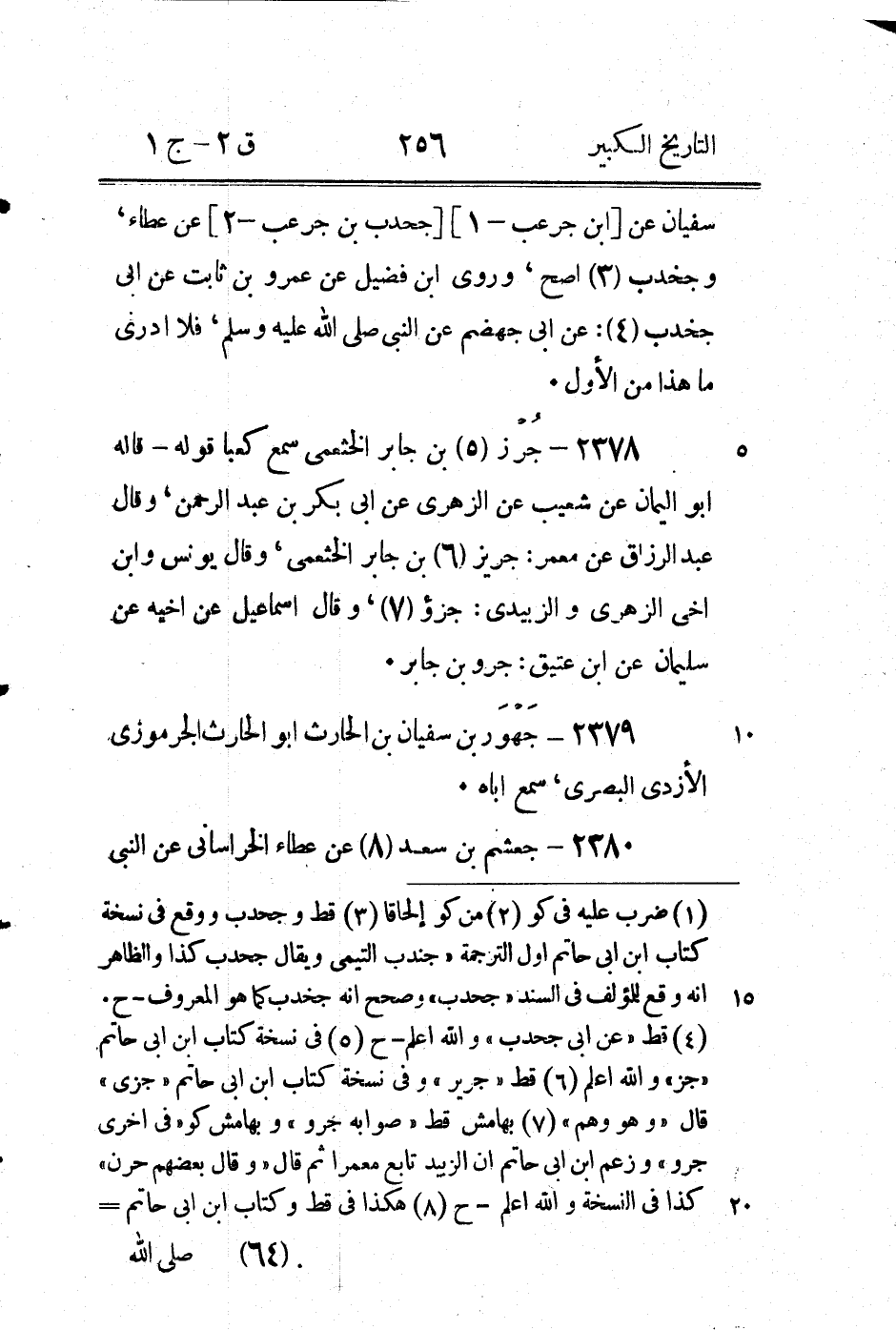 2382 - جلد بْن أيوب الْبَصْرِيّ، عَنْ معاوية بْن قرة، قَالَ لنا عَبْد اللَّه بْن عثمان قَالَ ابْن المبارك: أهل البصرة يضعفون حديث الجلد، وَقَالَ لِي صدقة كَانَ ابْن عيينة يَقُولُ: جلد ومن جلد؟ ومن كَانَ جلد - وروى (2) عَبْد اللَّه بْن مُحَمَّد عَنْ وهب بْن جرير سمع اباه حدثنى الجلد ابن أيوب عَنْ أَبِيه عَنْ جده قَالَ لِي كعب بْن سور: اركب معي حتى نطوف فِي الأسد - أيام الجمل.