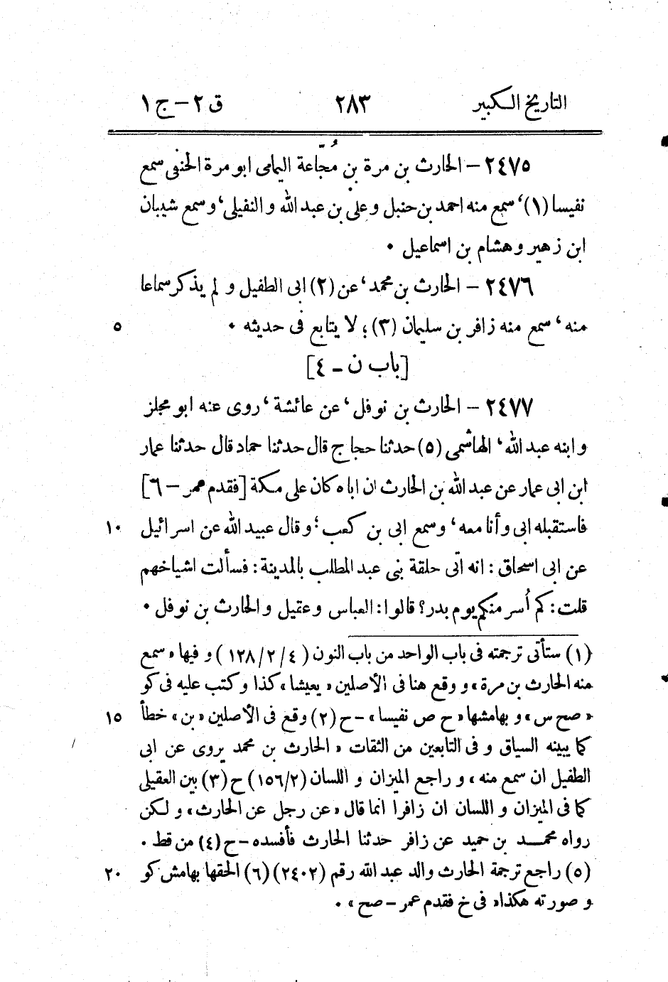 (1) عبارة ابن ابى حاتم " لحارث بن نوفل روى عن عروة بن المغيرة والشعبى كان من اشراف اهل الكوفة " (2) لم يذكره ابن ابى حاتم وستأتى الاشارة إلى احتمال انه هو الليثى الماضي (3) زدناه وفاء بالعادة - ح.