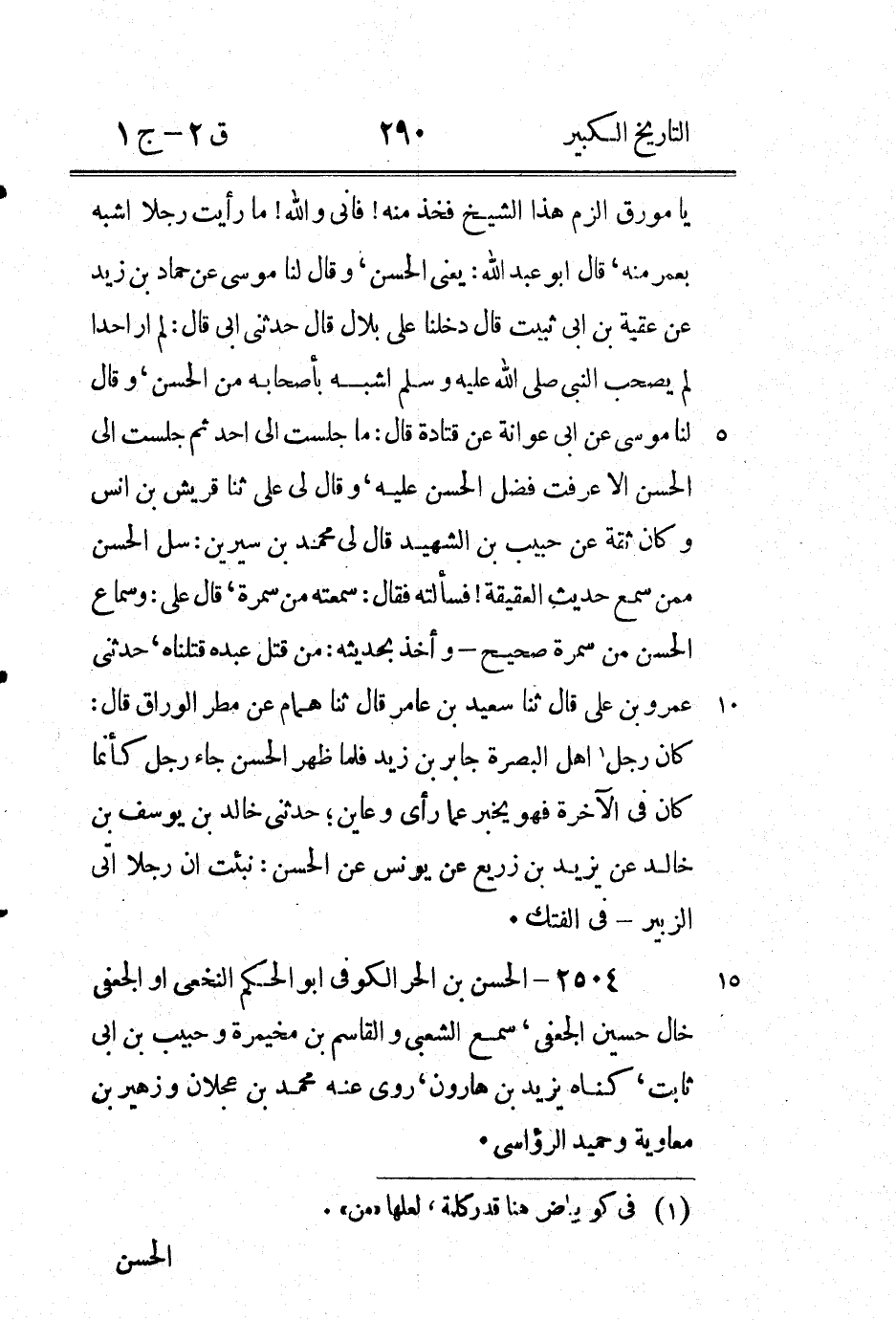 2505 - الحسن بن حصين العنبري أبو عبيد الله بْن الْحَسَن الْبَصْرِيّ رأى علي بْن حسين وسَعِيد بْن جُبَيْر، سَمِعَ منه عَبْد الصمد ومعاذ بْن معاذ التميمي، وسمع نصر بْن حسان ; هو ابن ابى الحر ابن الخشخاش.