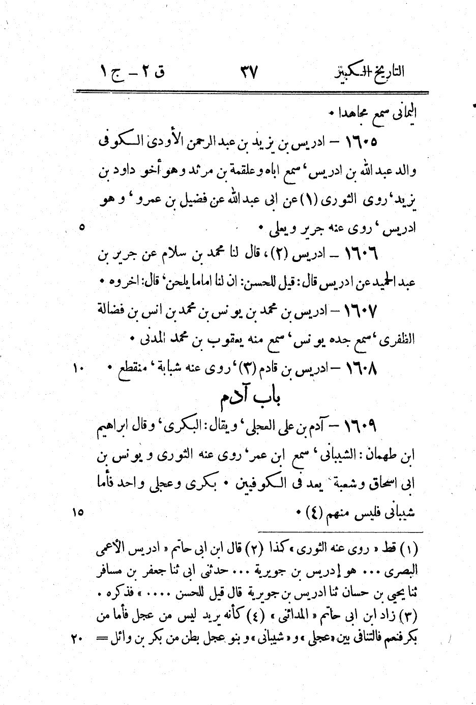 1612 - آدم بْن الزبرقان أَبُو شيبة (3) الكوفِي، قَالَ لِي أَحْمَد [بْن عثمان - 4] حدثنا ابن وهب أخبرني سَعِيد بْن أَبِي أيوب قَالَ حَدَّثَنِي آدم بْن الزبرقان قَالَ: سمعت الشَّعْبِيّ قَالَ: غزوت مَعَ ناس مِنْ أَصْحَابِ النَّبِيِّ صَلَّى اللَّهُ عَلَيْهِ وَسَلَّمَ فكنا إذا انتهينا إلى أهل قرية فإن كَانُوا أهل كتاب أكلنا من طعامهم، وشربْنا من حلال شرابهم وإن كَانُوا غير أهل كتاب انتفعنا بآنيتهم وغسلناها.