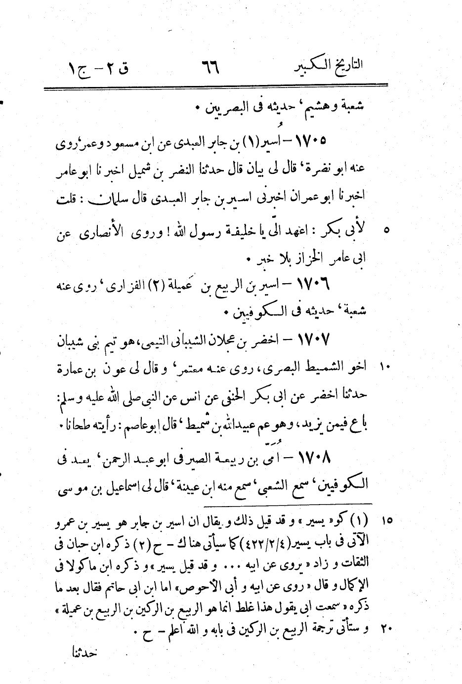 (1) قط " القيل " كذا (2) قال قتيبة وغيره يقول " هشيم بن ابى ساسان " كما يأتي (4 / 2 / 243) - ح (3) هي العدوية صرح به في التهذيب ووقع في قط ونسخة كتاب ابن ابى حاتم " معاذ " كذا - ح (4) هو السعدى صرح به ابن ابى حاتم والمزى وكنيته أبو المنبه ويقال له عمر بن مزيد له ترجمة عند ابن ابى حاتم (3 / 1 / 135) ووقع في كو " عمر بن نبيه " كذا - ح (5) من قط.