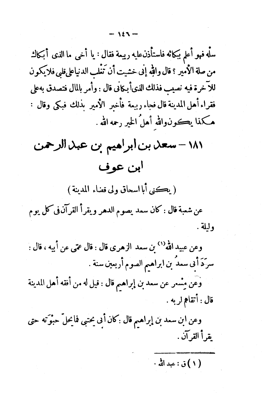 181 - سعد بن إبراهيم بن عبد الرحمن إبن عوفيكنى أبا إسحاق ولي قضاء المدينة