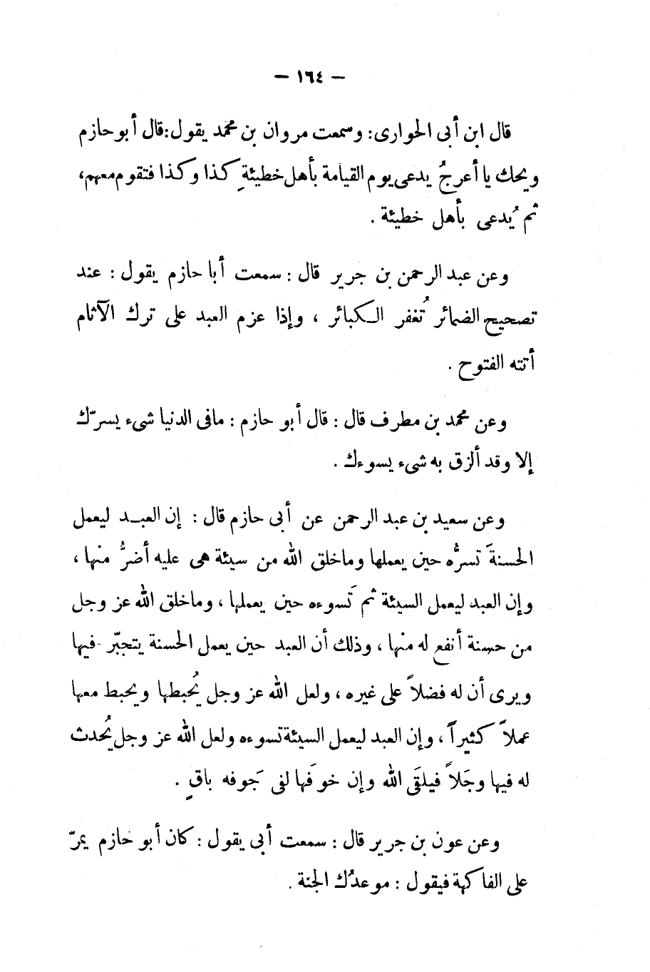 قال إبن أبي الحواري وسمعت مروان بن محمد يقول قال أبو حازم ويحك يا أعرج يدعى يوم القيامة بأهل خطيئة كذا وكذا فتقوم معهم ثم يدعى بأهل خطيئة