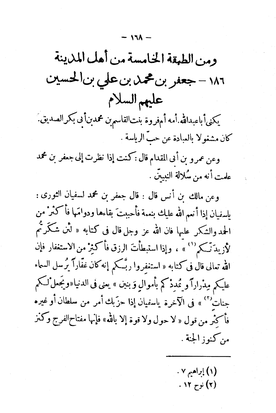 ومن الطبقة الخامسة من أهل المدينة 186 جعفر بن محمد بن علي بن الحسين عليهم السلام