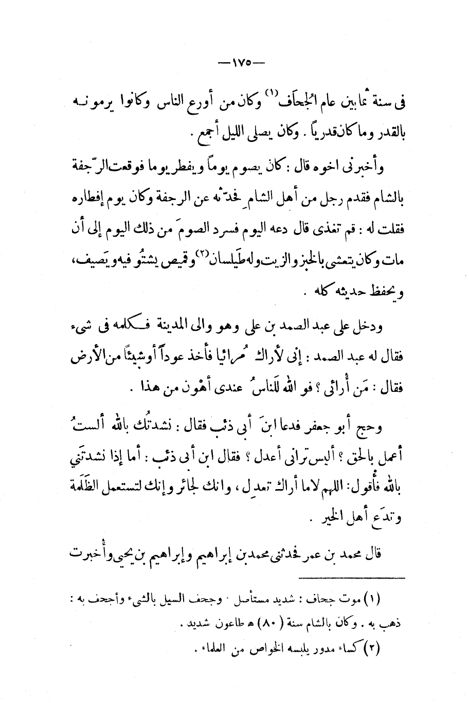 في سنة ثمانين عام الجحاف وكان من أورع الناس وكانوا يرمونه بالقدر وما كان قدريا وكان يصلي الليل أجمع