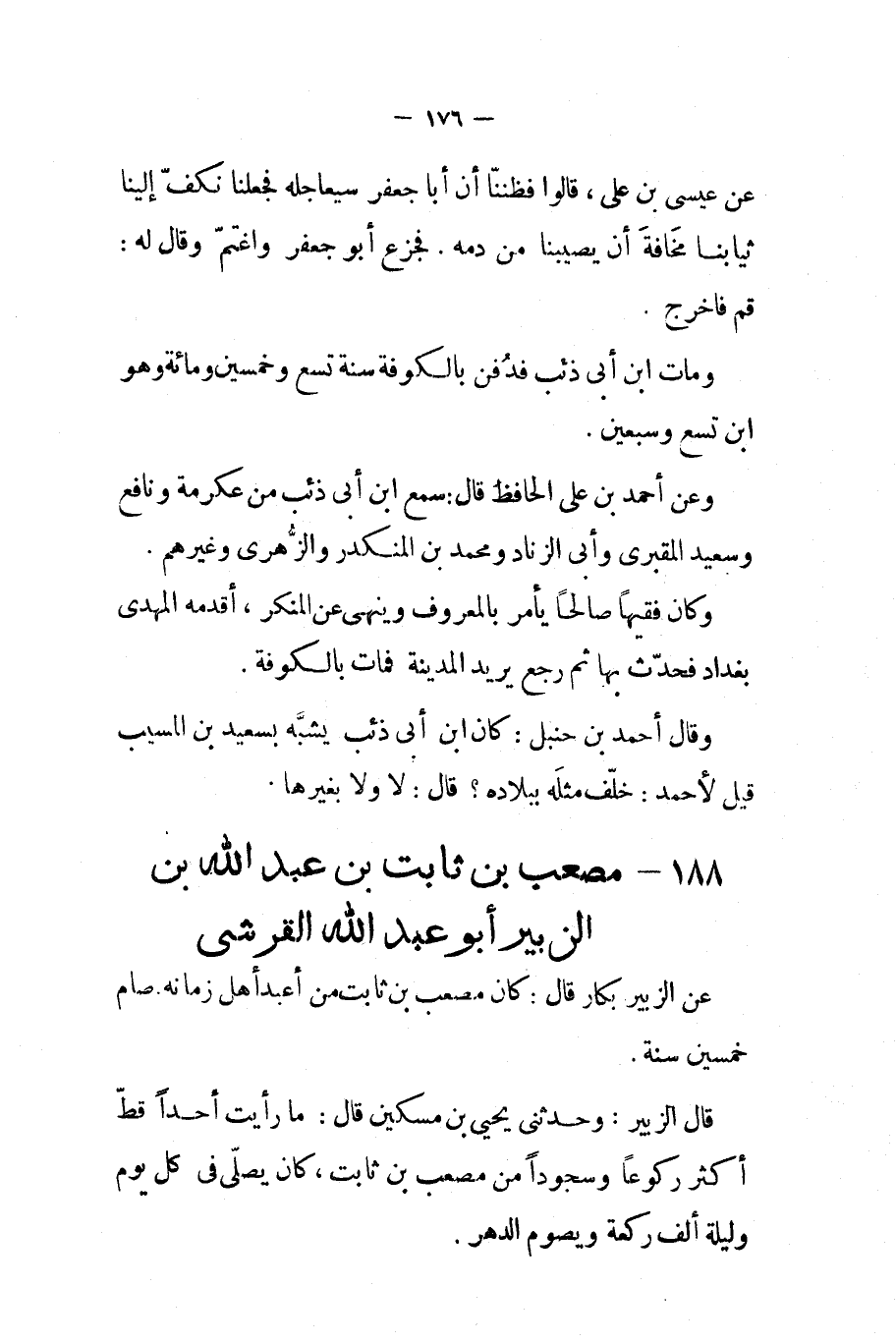 188 - مصعب بن ثابت بن عبد الله بن الزبير أبو عبد الله القرشي