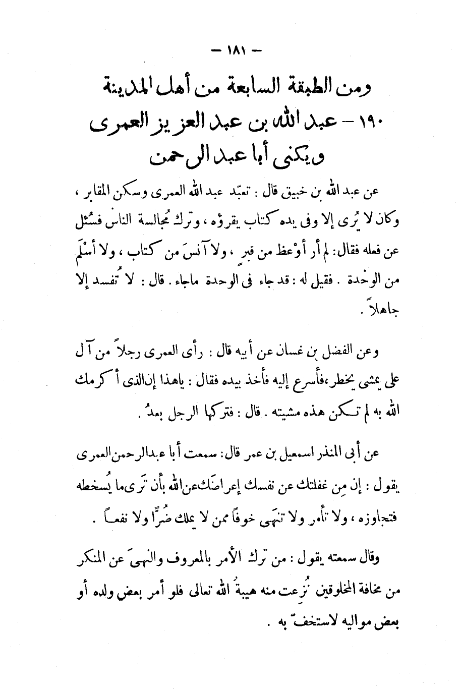 190 - عبد الله بن عبد العزيز العمري ويكنى أبا عبد الرحمن