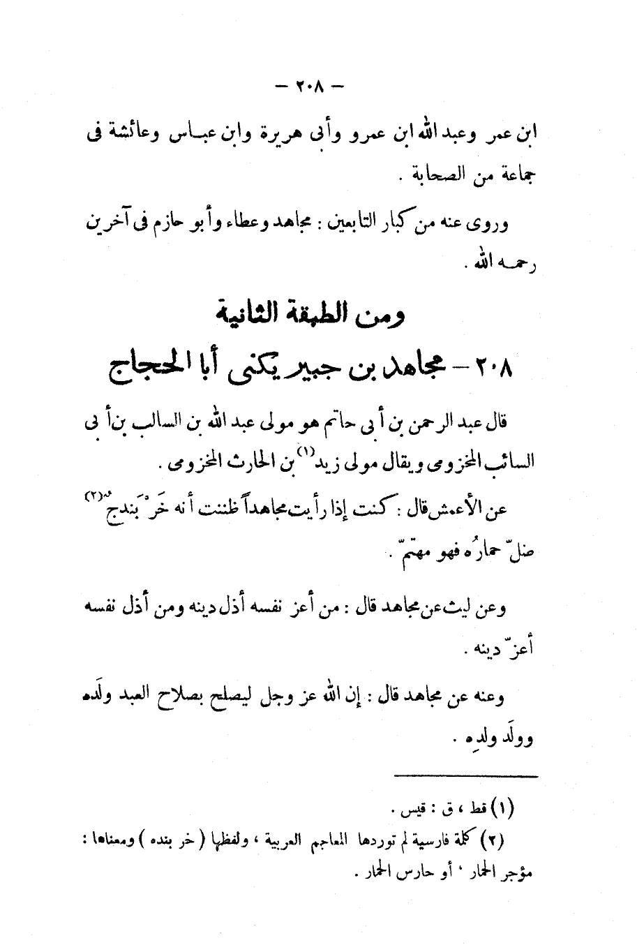 208 - مجاهد بن جبير يكنى أبا الحجاج