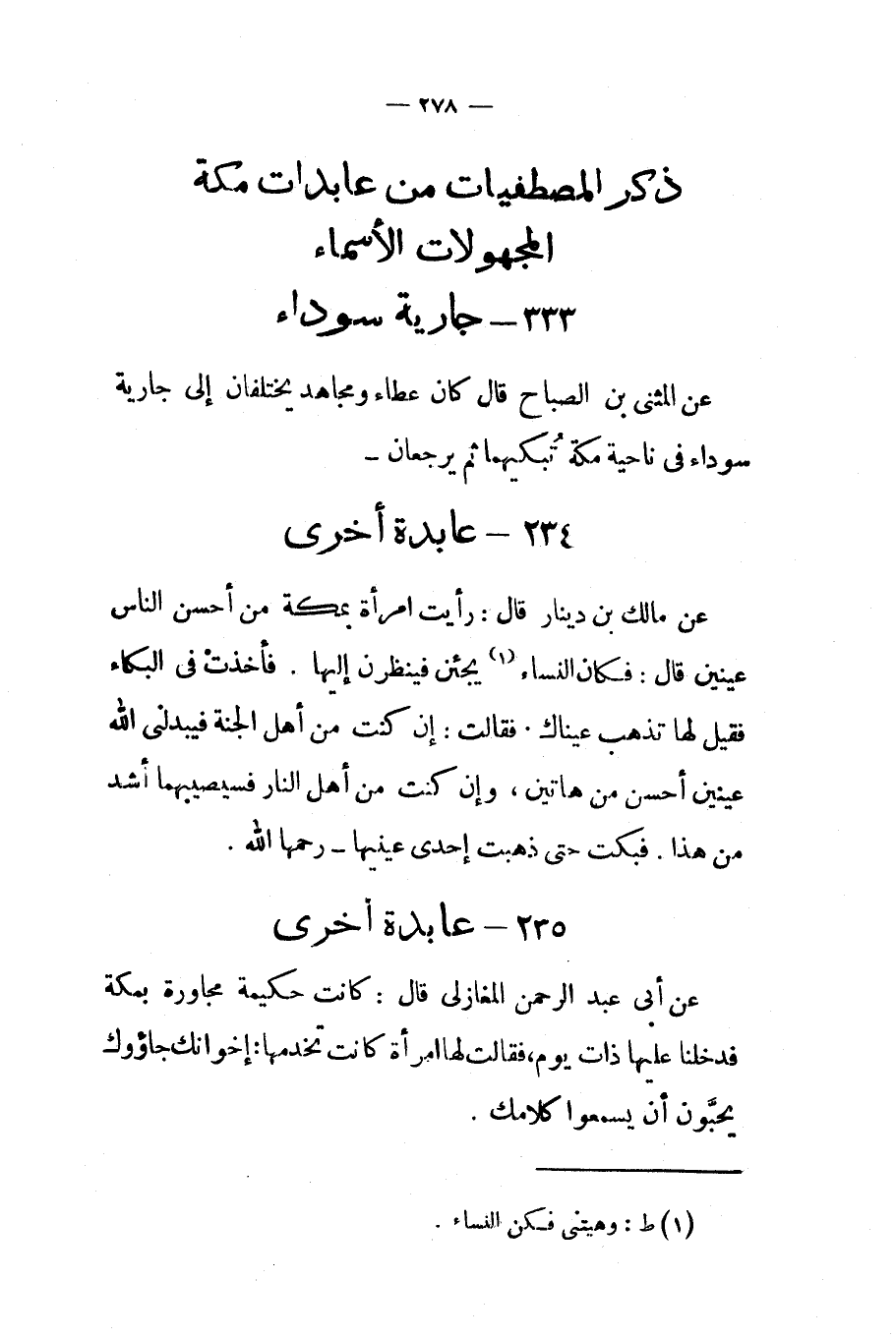 ذكر المصطفيات من عابدات مكة المجهولات الأسماء