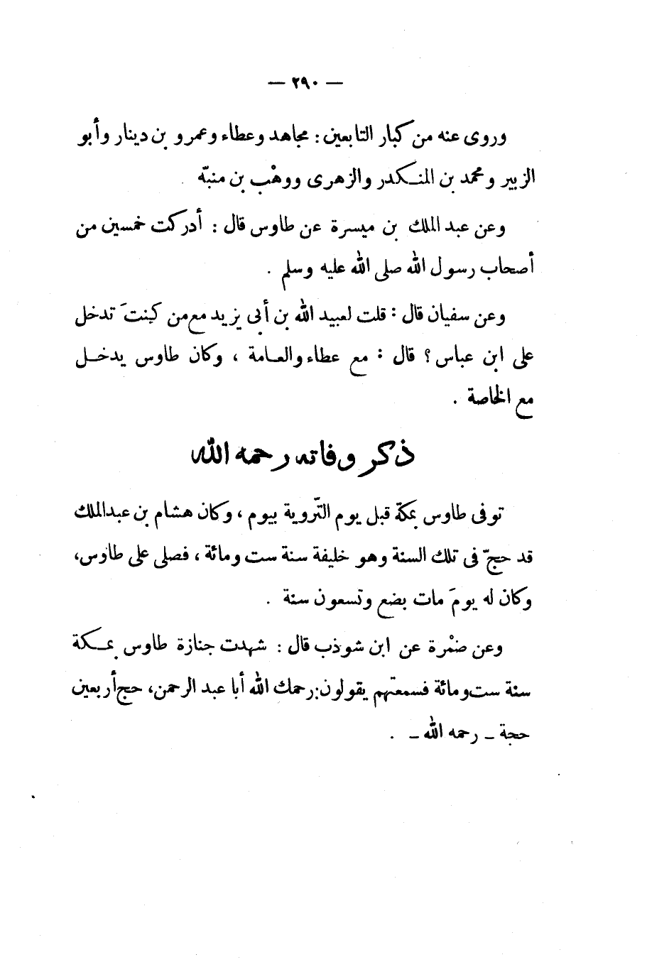 وعن ضمرة عن إبن شوذب قال شهدت جنازة طاوس بمكة سنة ست ومائة فسمعتهم يقولون رحمك الله أبا عبد الرحمن حج أربعين حجة رحمه الله