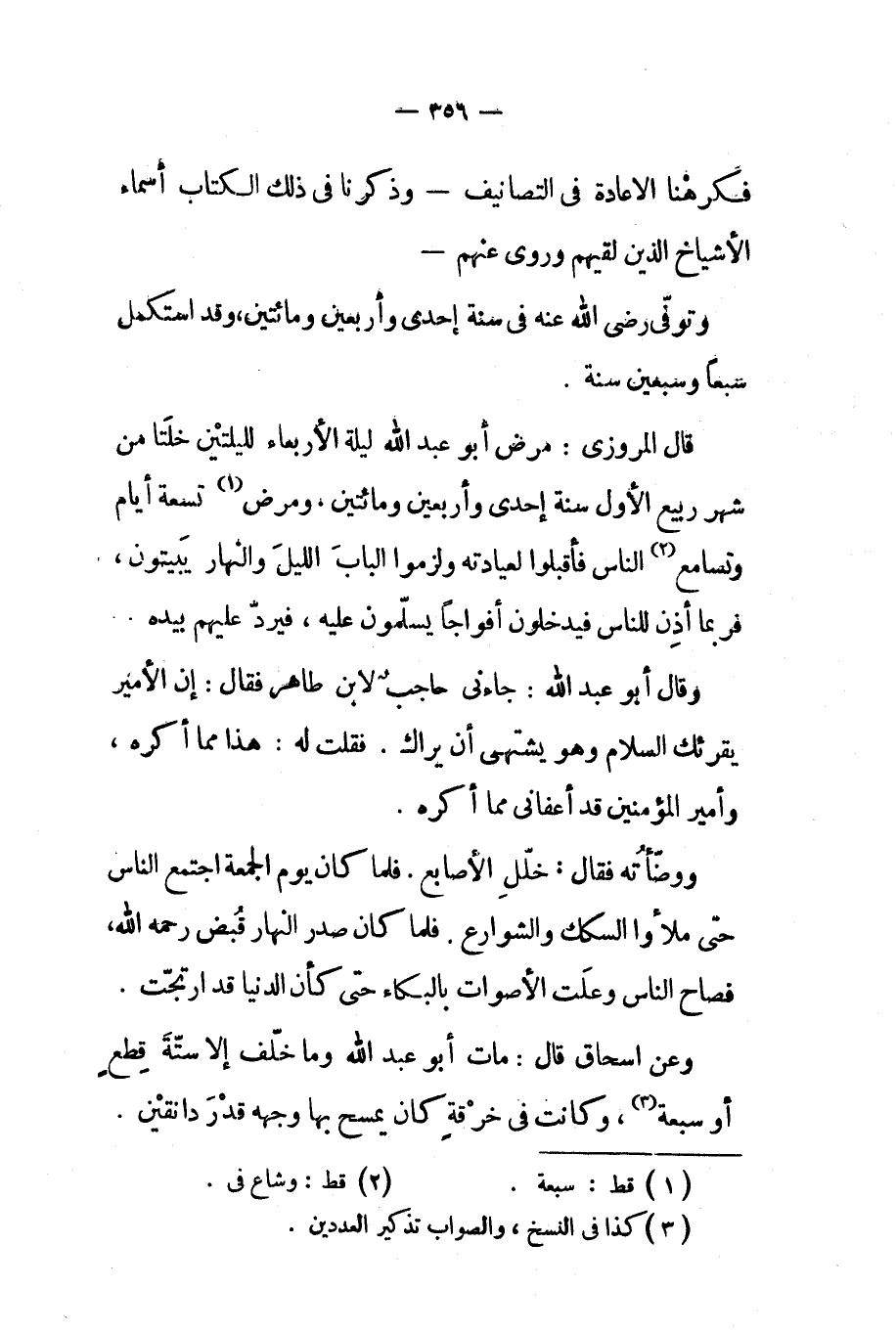 وقال أبو عبد الله جاءني حاجب لابن طاهر فقال إن الأمير يقرئك السلام وهو يشتهي أن يراك فقلت له هذا مما أكره وأمير المؤمنين قد أعفاني مما أكره
