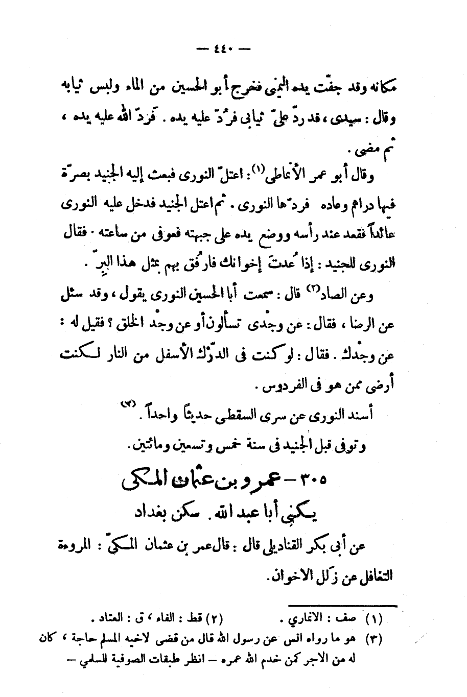 وتوفي قبل الجنيد في سنة خمس وتسعين ومائتين 305 عمرو بن عثمان المكي