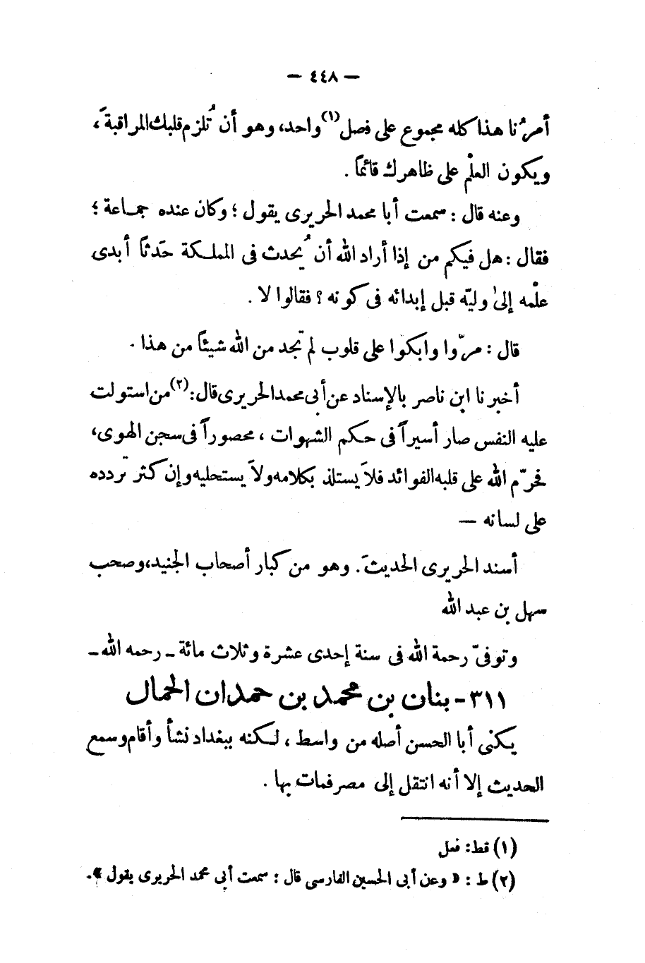 أسند الحريري الحديث وهو من كبار أصحاب الجنيد وصحب سهل بن عبد الله