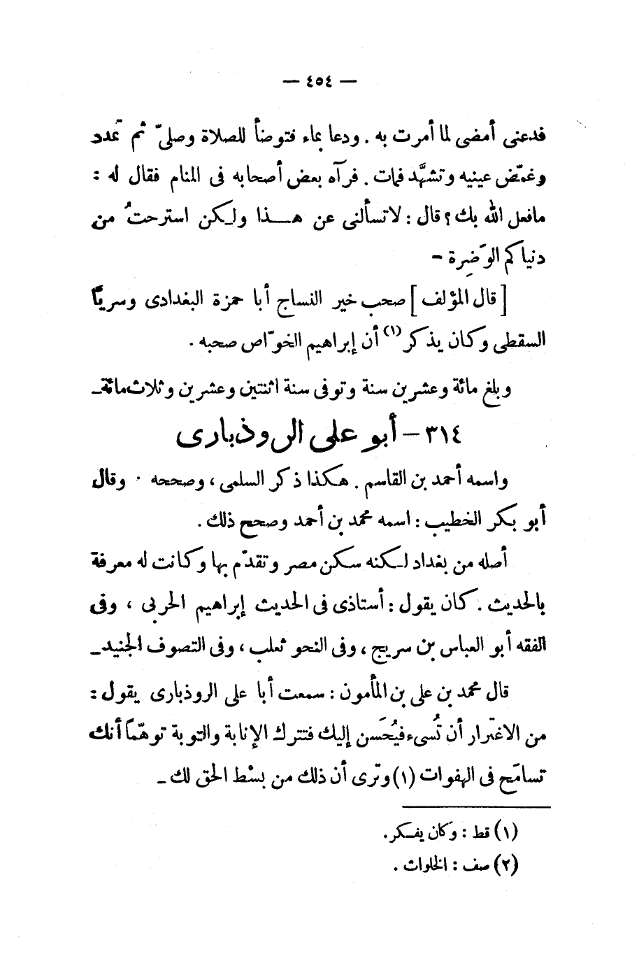 فدعني أمضي لما أمرت به ودعا بماء فتوضأ للصلاة وصلى ثم تمدد وغمض عينيه وتشهد فمات فرآه بعض أصحابه في المنام فقال له ما فعل الله بك قال لاتسألني عن هذا ولكن استرحت من دنياكم الوضرة