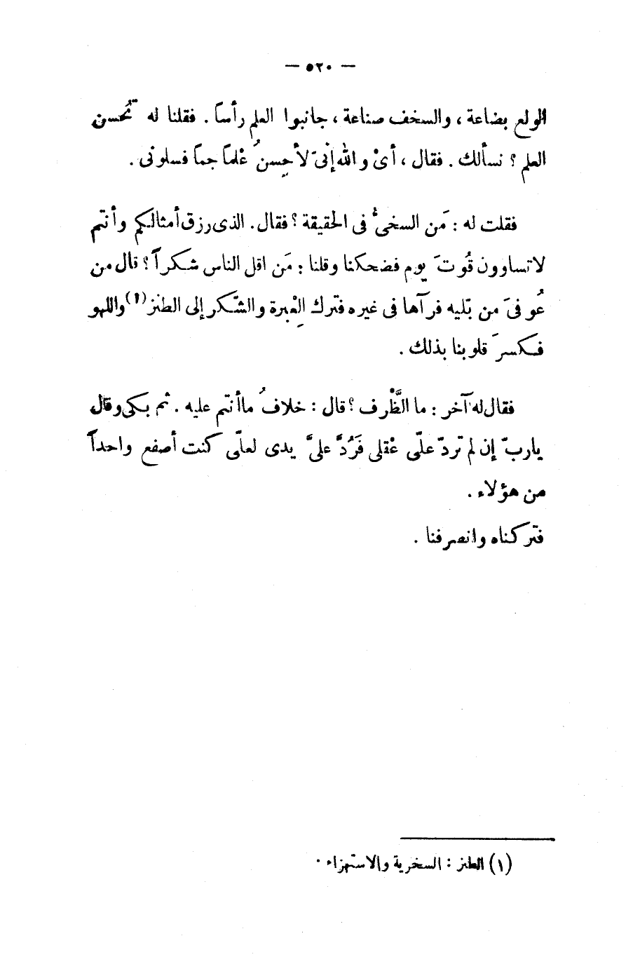 وقال له آخر ما الظرف قال خلاف ما أنتم عليه ثم بكى وقال يا رب إن لم ترد علي عقلي فرد علي يدي لعلي كنت أصفع واحدا من هؤلاء فتركناه وإنصرفنا