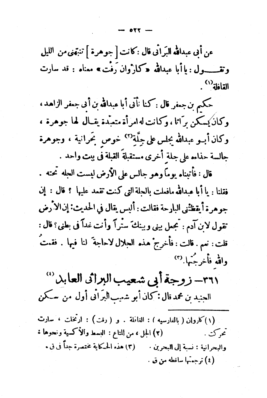 عن أبي عبد الله البراثي قال كانت جوهرة تنبهني من الليل وتقول يا أبا عبد الله كاروان رفت معناه قد سارت القافلة