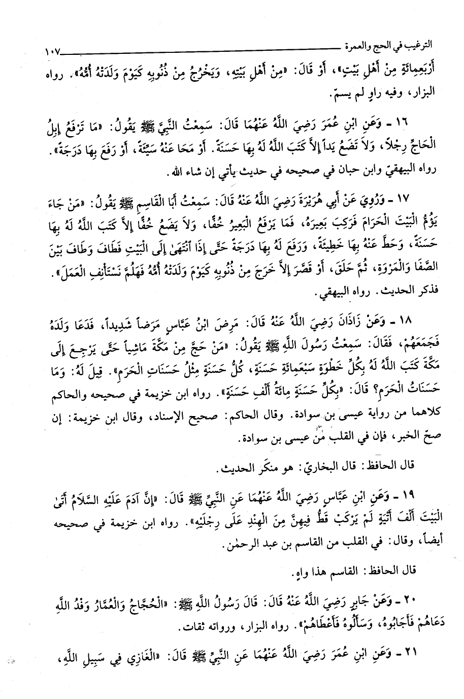 1694 - وَرُوِيَ عَن أبي هُرَيْرَة رَضِي الله عَنهُ قَالَ سَمِعت أَبَا الْقَاسِم صلى الله عَلَيْهِ وَسلم يَقُول من جَاءَ يؤم الْبَيْت الْحَرَام فَركب بعيره فَمَا يرفع الْبَعِير خفا وَلَا يضع خفا إِلَّا كتب الله لَهُ بهَا حَسَنَة وَحط عَنهُ بهَا خَطِيئَة وَرفع لَهُ بهَا دَرَجَة حَتَّى إِذا انْتهى إِلَى الْبَيْت فَطَافَ وَطَاف بَين الصَّفَا والمروة ثمَّ حلق أَو قصر إِلَّا خرج من ذنُوبه كَيَوْم وَلدته أمه فَهَلُمَّ نستأنف الْعَمَل
