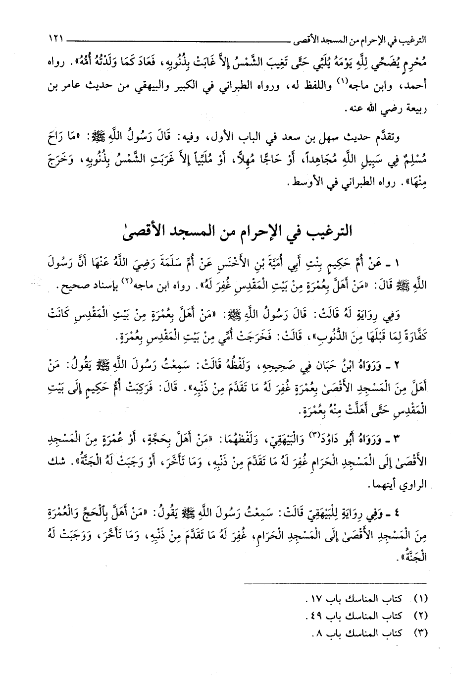 5 - التَّرْغِيب فِي الْإِحْرَام من الْمَسْجِد الْأَقْصَى