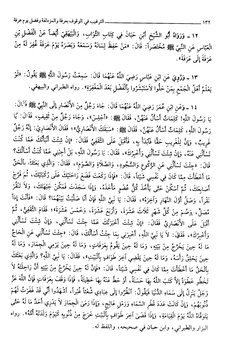 1801 - وَرَوَاهُ أَبُو الشَّيْخ ابْن حبَان فِي كتاب الثَّوَاب وَالْبَيْهَقِيّ أَيْضا عَن الْفضل بن الْعَبَّاس عَن النَّبِي صلى الله عَلَيْهِ وَسلم مُخْتَصرا قَالَ من حفظ لِسَانه وسَمعه وبصره يَوْم عَرَفَة غفر لَهُ من عَرَفَة إِلَى عَرَفَة