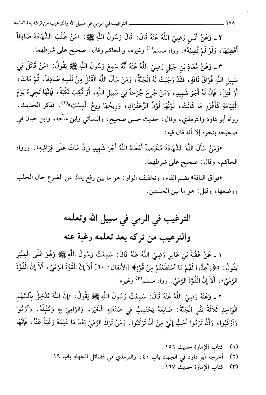 التَّرْغِيب فِي الرَّمْي فِي سَبِيل الله وتعلمه والترهيب من تَركه بعد تعلمه رَغْبَة عَنهُ