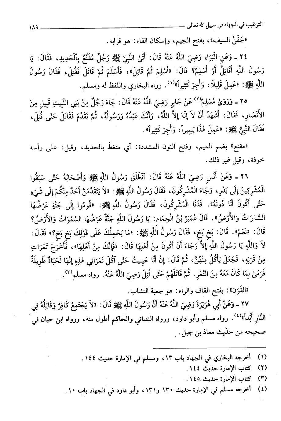 2053 - وروى مُسلم عَن جَابر رَضِي الله عَنهُ قَالَ جَاءَ رجل من بني النبيت قبيل من الْأَنْصَار فَقَالَ أشهد أَن لَا إِلَه إِلَّا الله وَأَنَّك عَبده وَرَسُوله ثمَّ تقدم فقاتل حَتَّى قتل فَقَالَ النَّبِي صلى الله عَلَيْهِ وَسلم عمل هَذَا يَسِيرا وَأجر كثيرا