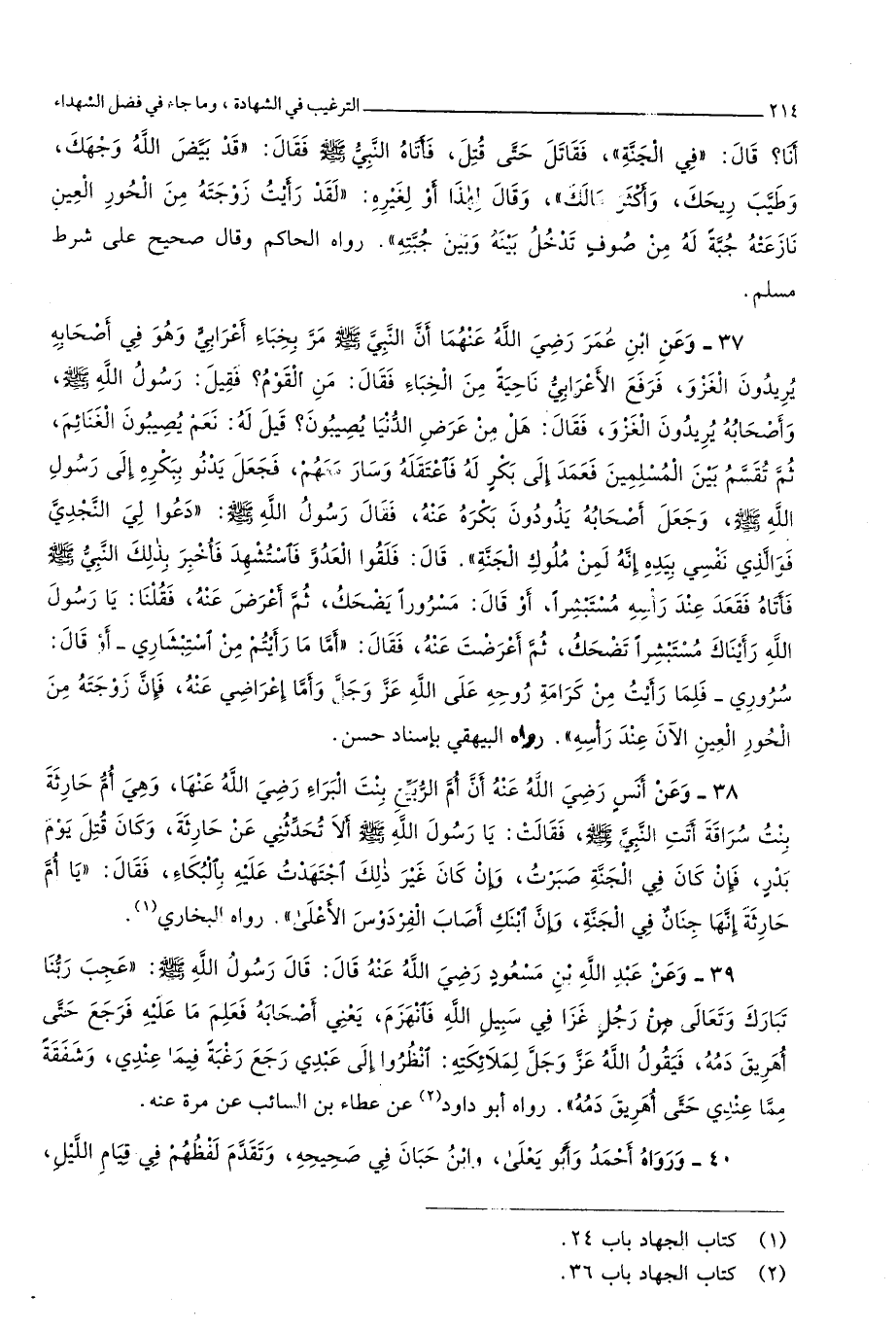 قَالَ فَلَقوا الْعَدو فاستشهد فَأخْبر بذلك النَّبِي صلى الله عَلَيْهِ وَسلم فَأَتَاهُ فَقعدَ عِنْد رَأسه مُسْتَبْشِرًا أَو قَالَ مَسْرُورا يضْحك ثمَّ أعرض عَنهُ فَقُلْنَا يَا رَسُول الله رَأَيْنَاك مُسْتَبْشِرًا تضحك ثمَّ أَعرَضت عَنهُ فَقَالَ أما مَا رَأَيْتُمْ من استبشاري أَو قَالَ سروري فَلَمَّا رَأَيْت من كَرَامَة روحه على الله عز وَجل وَأما إعراضي عَنهُ فَإِن زَوجته من الْحور الْعين الْآن عِنْد رَأسه