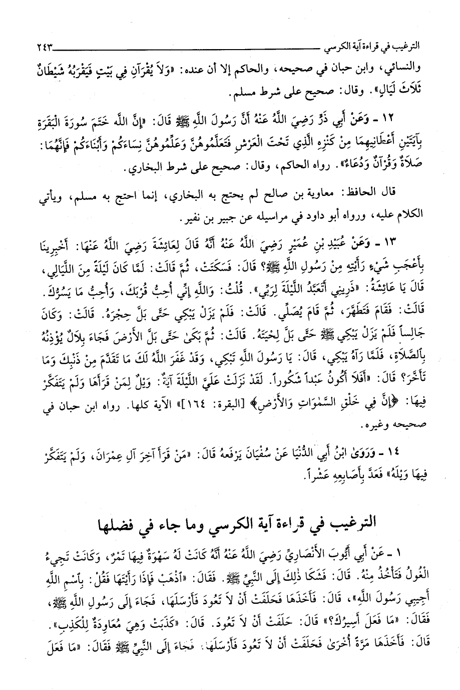 7 - التَّرْغِيب فِي قِرَاءَة آيَة الْكُرْسِيّ وَمَا جَاءَ فِي فَضلهَا