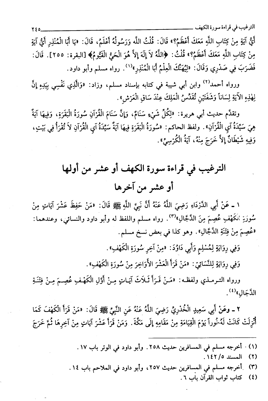 8 - التَّرْغِيب فِي قِرَاءَة سُورَة الْكَهْف أَو عشر من أَولهَا أَو عشر من آخرهَا