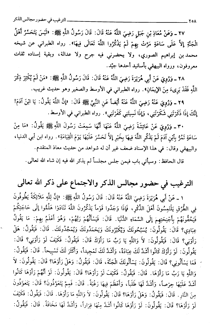 2 - التَّرْغِيب فِي حُضُور مجَالِس الذّكر والاجتماع على ذكر الله تَعَالَى